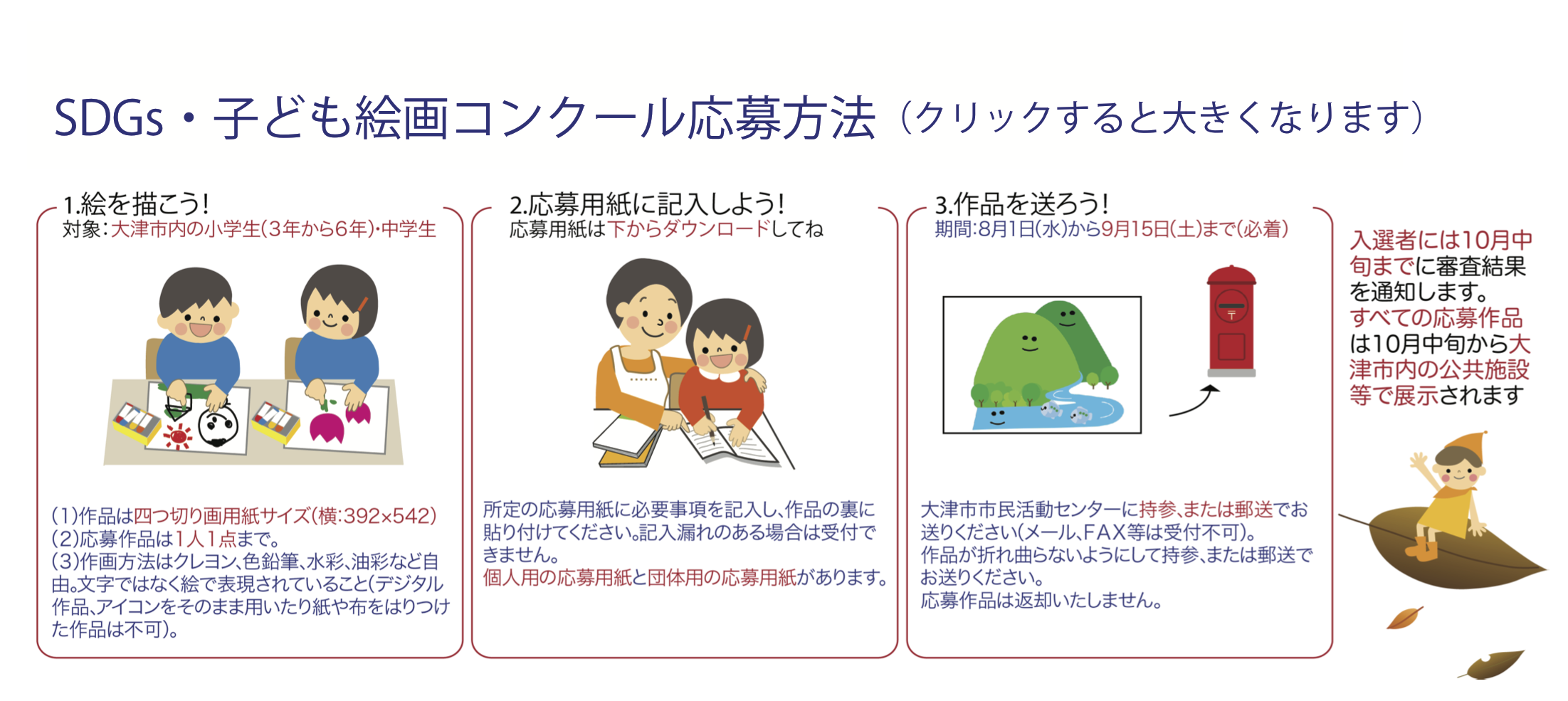 - 対象:大津・SDGs子ども絵画コンクールに応募する市内の小学校3-6年生)